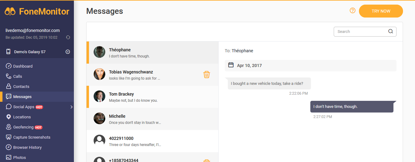 The service is easy to use because you only need to create a FoneMonitor account and then install the software on the target device. Once you log into your PC’s browser or cell phone, you can keep on track on the target user’s messages, calls, including many more activities.